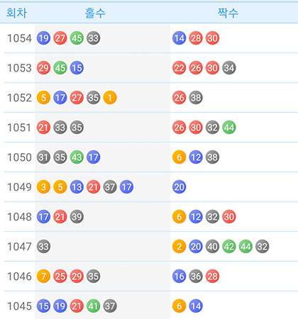 로또 1055회 당첨번호 홀짝수 조합을 생각하면서 1055회 로또예상번호를 선별하세요.