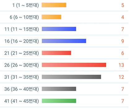 보통 우리는 하나의 숫자에만 집착하는데 그러지 말고 골고루 고르는 게 좋습니다. 가령 5개의 숫자를 고른다면 3개는 홀수, 2개는 짝수 이렇게 구성하면 됩니다.
