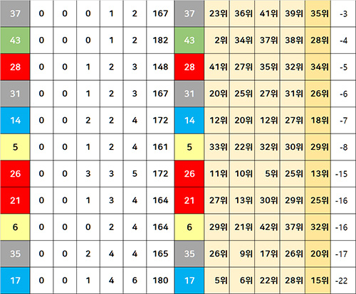 26번 21번 6번 35번 17번은 최근 당첨 실적이 너무 하락했으니 로또 1061회 당첨번호로 나올 가능성이 희박하다는 분석입니다.