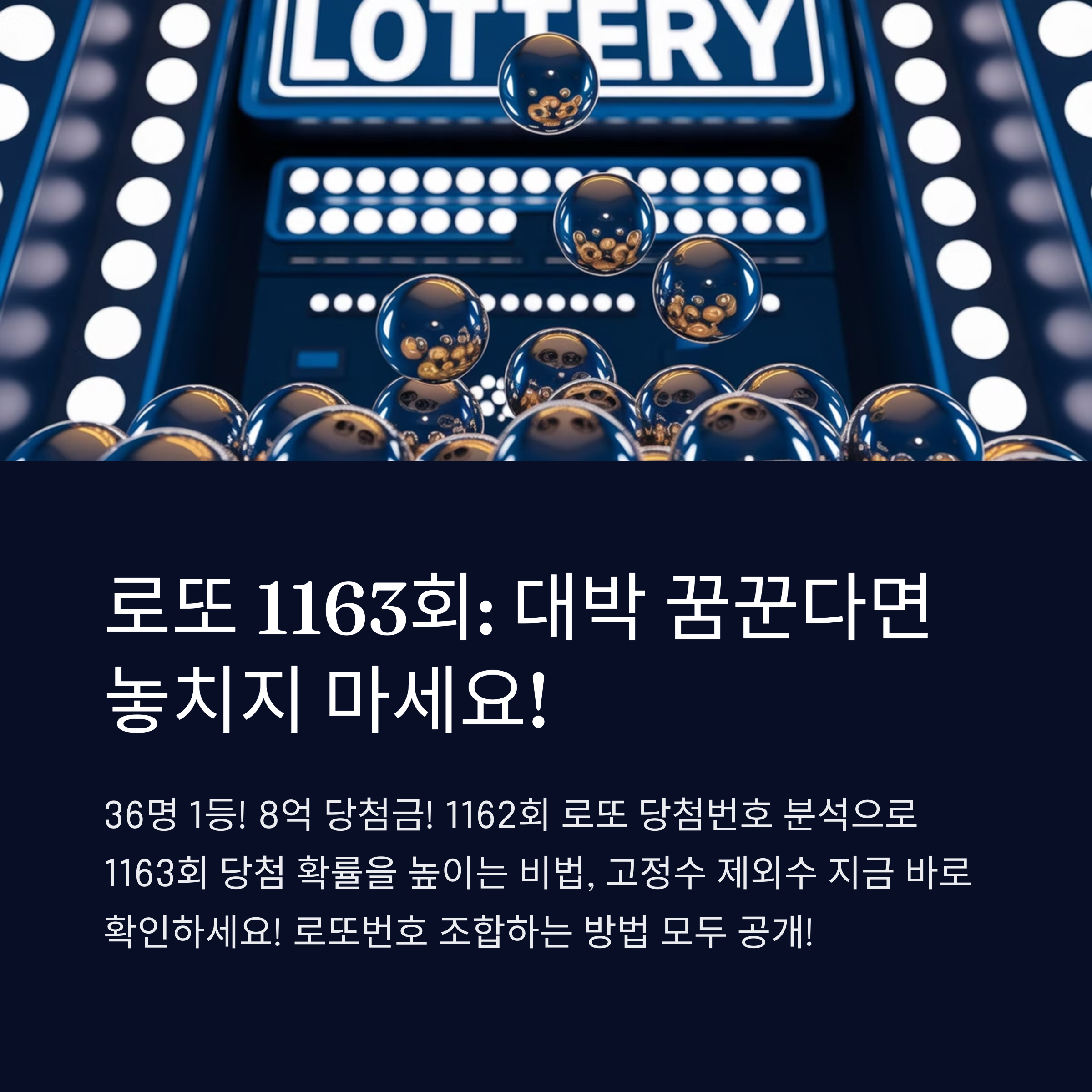 이번 분석을 통해 제외해야 할 번호와 포함시킬 만한 고정수를 선별하고, 최종적으로 1163회 예상번호 조합을 제시하겠습니다.